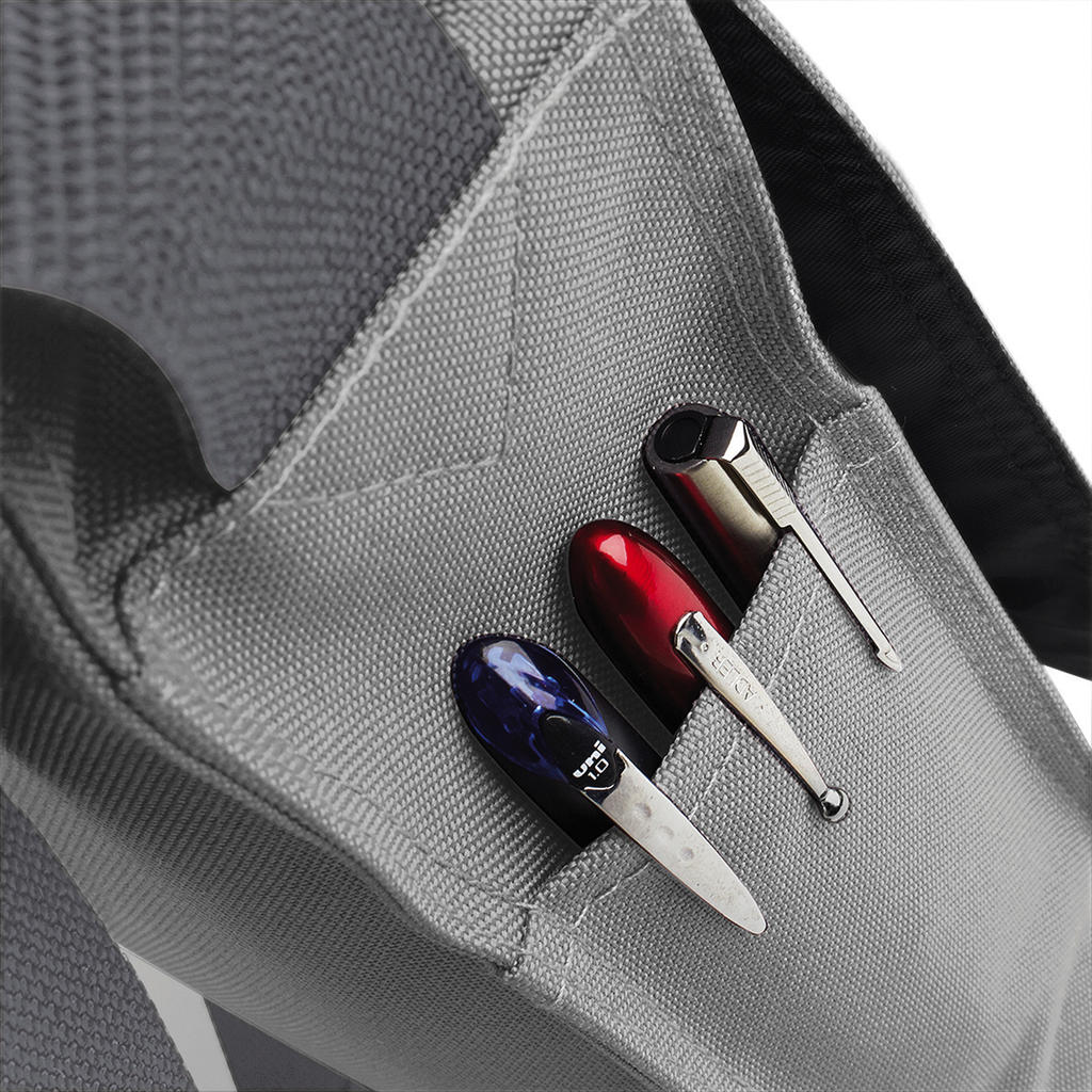 · 100% polyester (600D) · bandoulière ajustable · poche filet sous le rabat · fermeture Rip-Strip™ · porte crayon · étiquette détachable · capacité: 7 litres · dimensions: 38,5 x 29 x 8 cm · surface broderie: anneau plat de 18 · surface impression: 36 x 19 cm